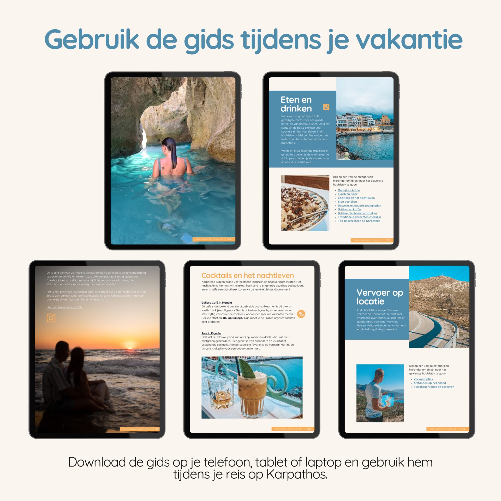 Je kunt de gids openen op elk apparaat: smartphone, tablet of laptop. Geen speciale app nodig, het is gewoon een PDF.