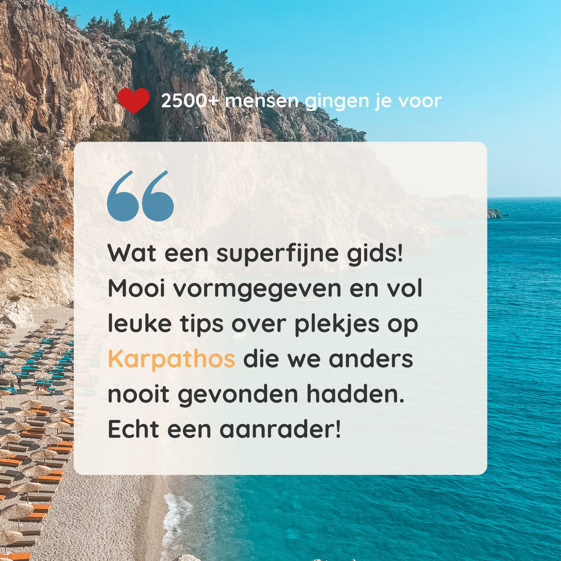 Op dit moment zijn wij voor de eerste keer op Karpathos. Wat een geweldig eiland! Een paar maanden geleden hebben we de reisgids al gekocht, toen is de voorpet van onze vakantie al begonnen. Wat een super complete, duidelijke en prachtig vormgegeven reisgids. We zijn er super blij mee! Een absolute aanrader!!