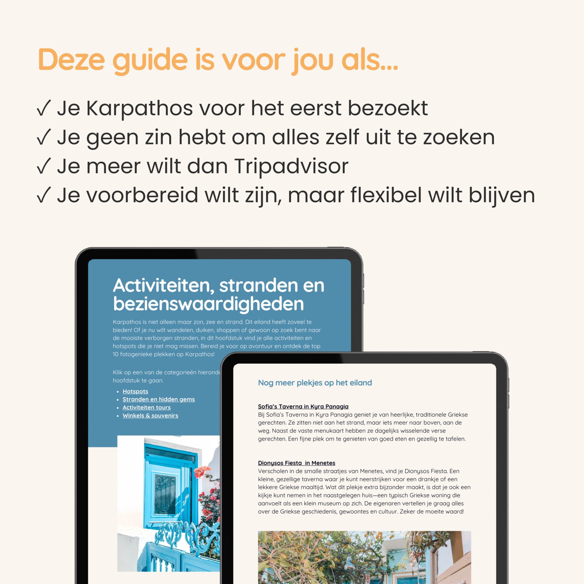 Ontdek de mooiste plekken van Karpathos met deze digitale reisgids van 200+ pagina’s.